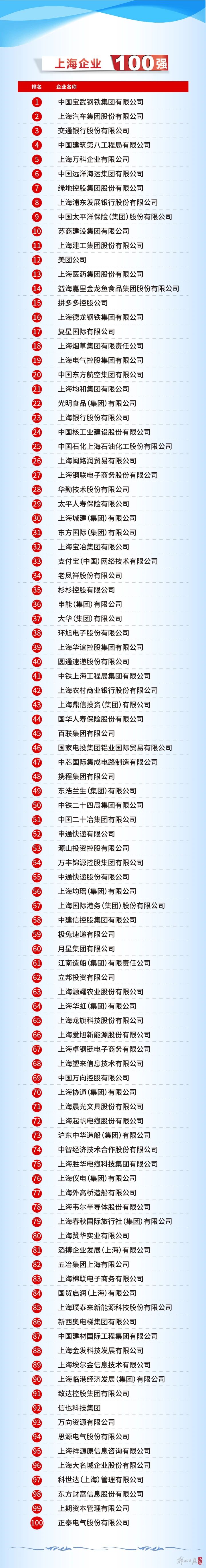 杉杉荣膺2024上海百强企业 名列第35位 2024年09月04日 9月3日,上海市企业联合会、上海市企业家协会、上海市经济团体联合会和解放日报社在中国金融信息中心召开2024上海百强企业新闻发布会,揭晓了2024上海企业100强榜单并发布2024百强企业发展报告。杉杉控股有限公司入选榜单,名列第35位。